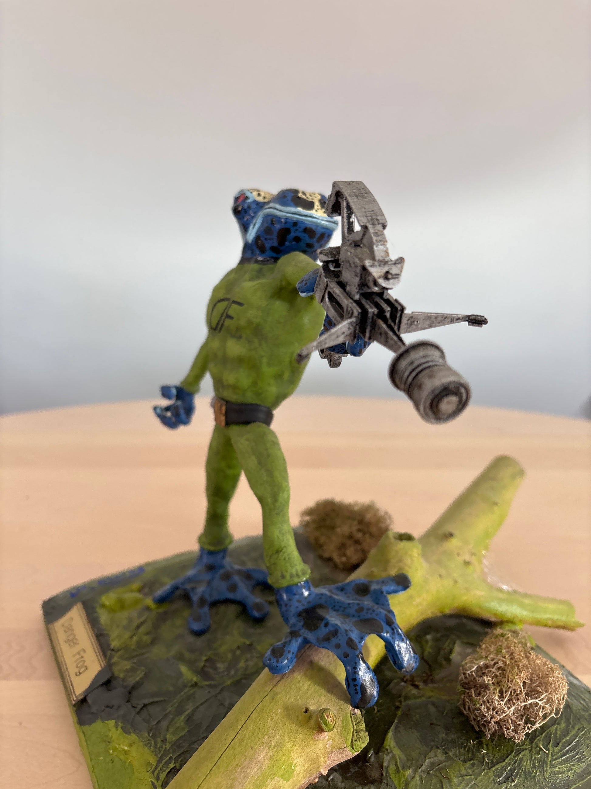 "Introducing Danger Frog, a unique mixed media sculpture featuring found objects. With 100% danger and a surprise swamp setting, this frog is anything but ordinary. Handcrafted with attention to detail, this piece is sure to make a statement in any space"