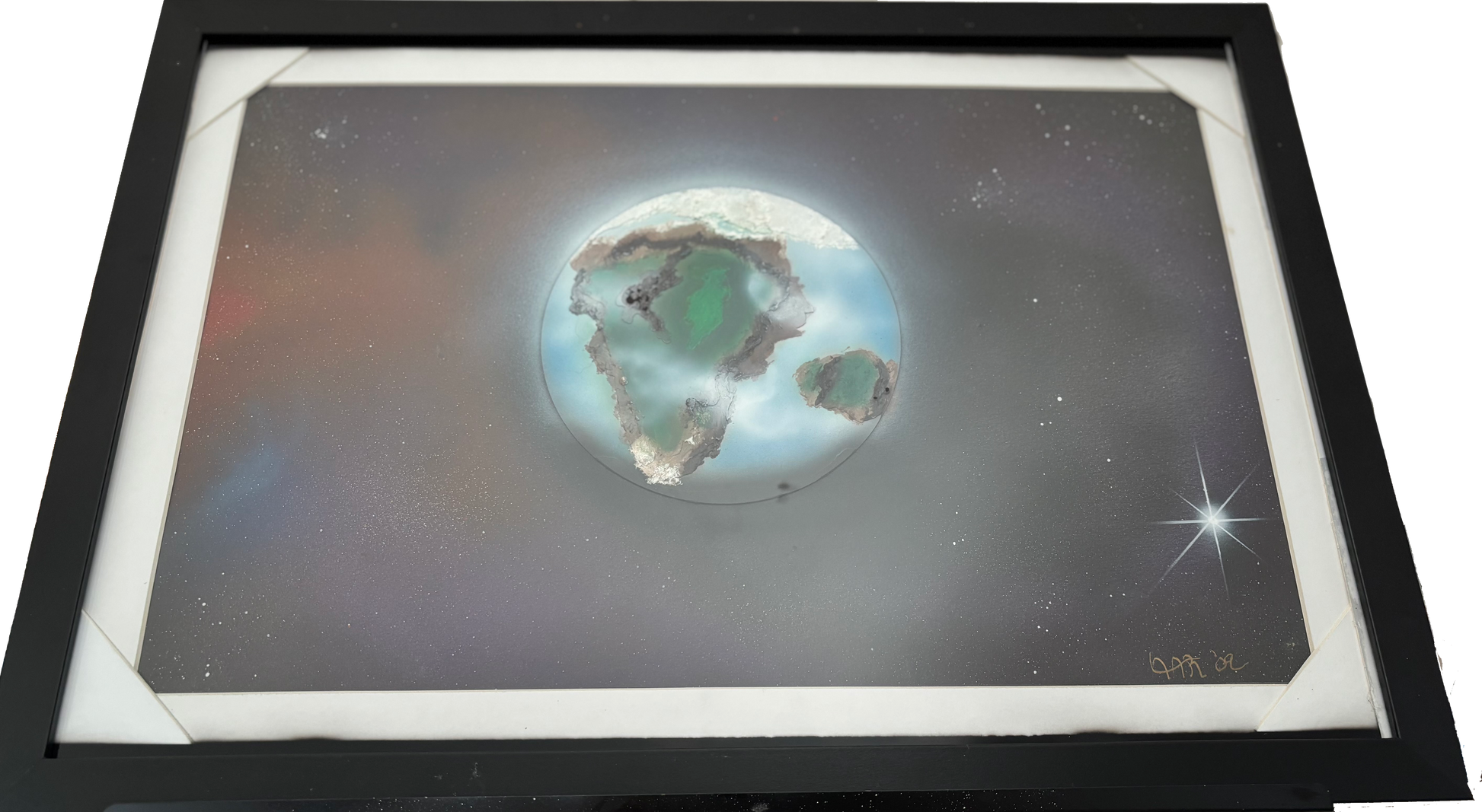Enhance your living space with Neighbors. This 19x13 acrylic painting features an airbrushed sun and galaxy, adding a touch of celestial beauty to your walls. Scientifically crafted with precision and expertly painted, it's sure to elevate your home decor.